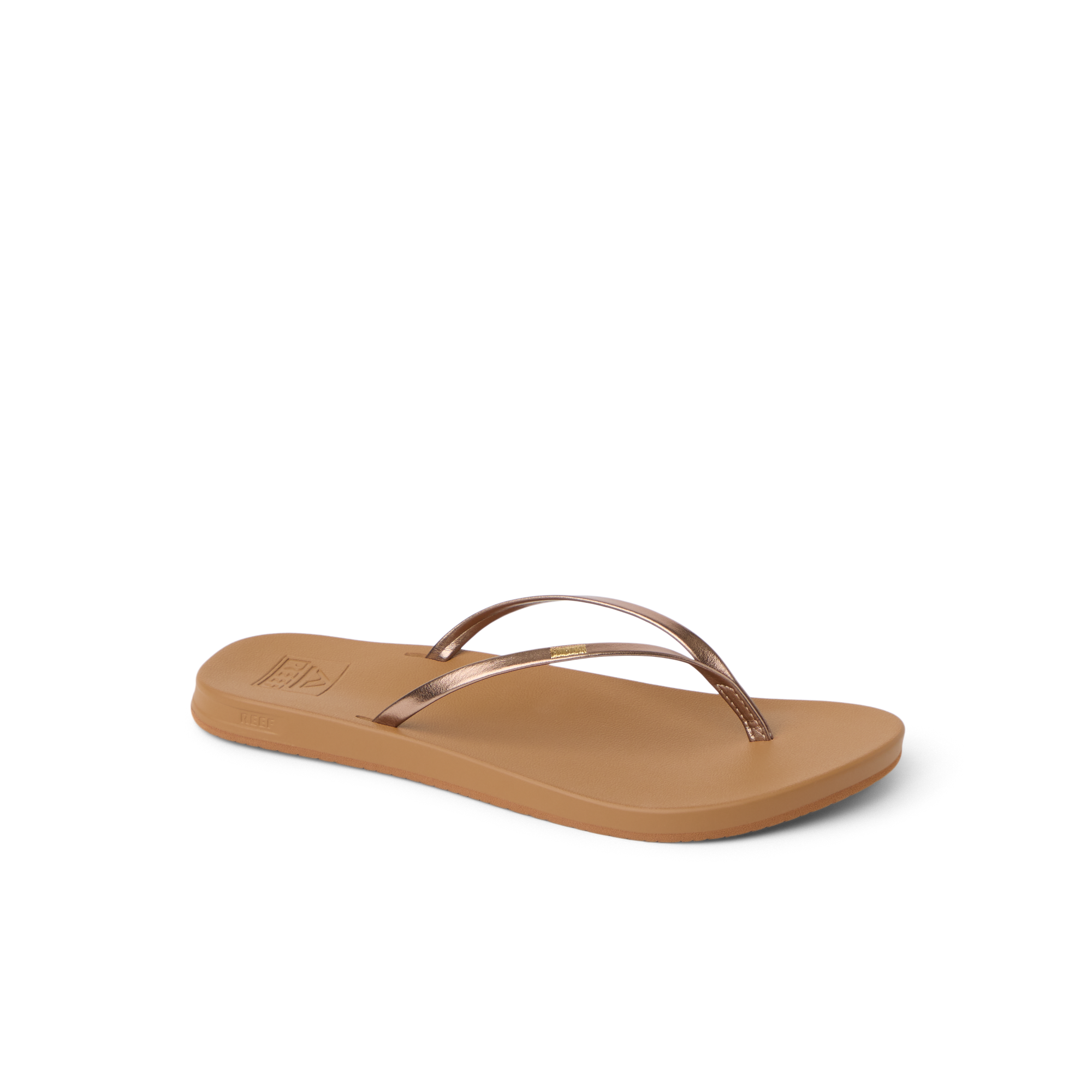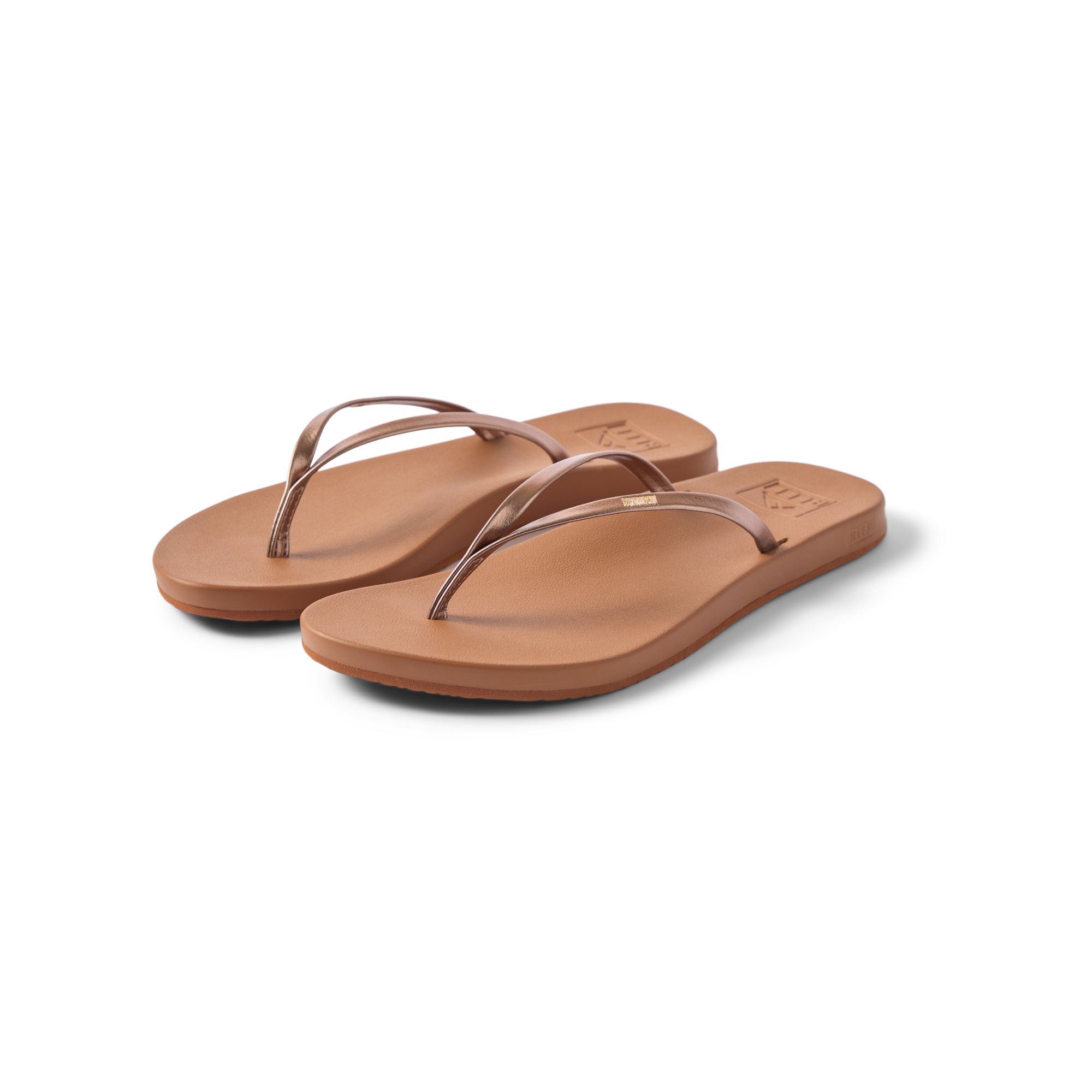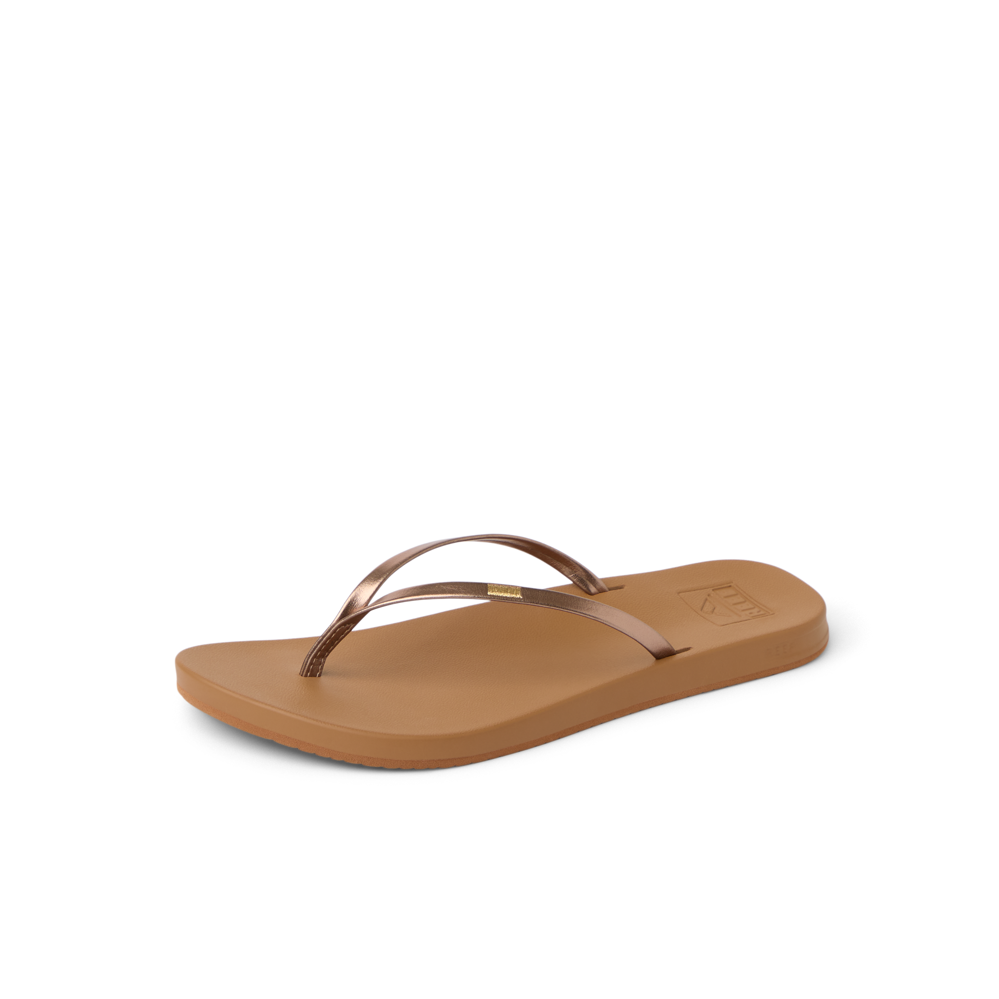A delicate embroidered gold detail and slim straps transform our classic Cushion Slim flip flops. Just as comfy. a touch more chic. With a vegan leather strap. high energy rebound footbed and anatomical arch support.