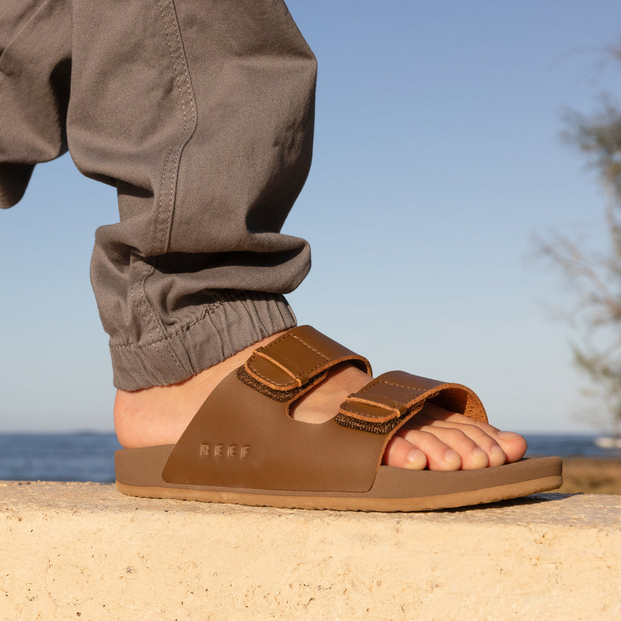 Introducing the new Little Ojai Sunstroll. so your kiddo can look as good as you do. Inspired by our Ojai Two Bar. this premium sandal is made with sustainably-sourced suede and a soft jersey lining for instant comfort. We added an elasticized back strap for a secure and adaptive fit.