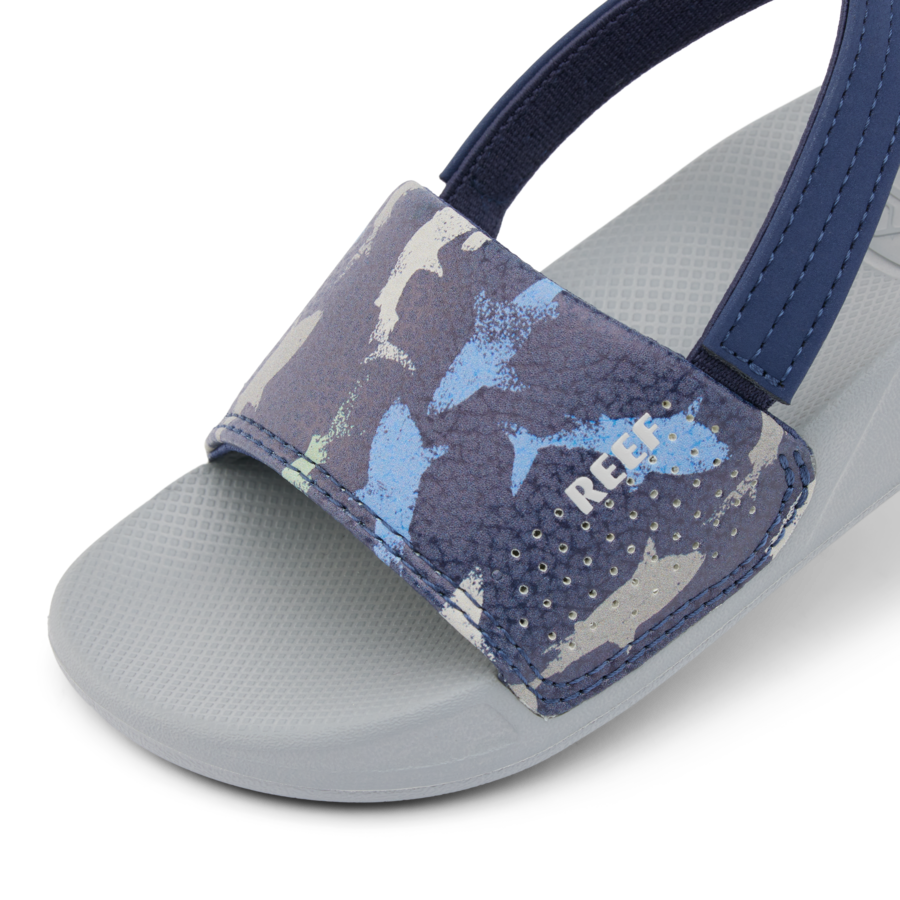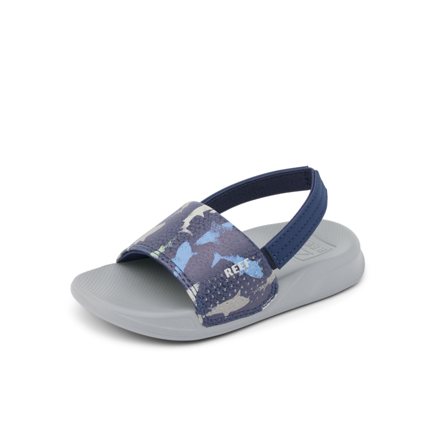 Great things happen when you mix water and fun. Water slides. Water balloons. And the Kids One Slide. our pintsized take on the classic Reef One Slide. Made with water friendly synthetic straps and a super soft padded jersey lining for comfort. These are awesome in the sand. by the bathtub and everywhere in between.