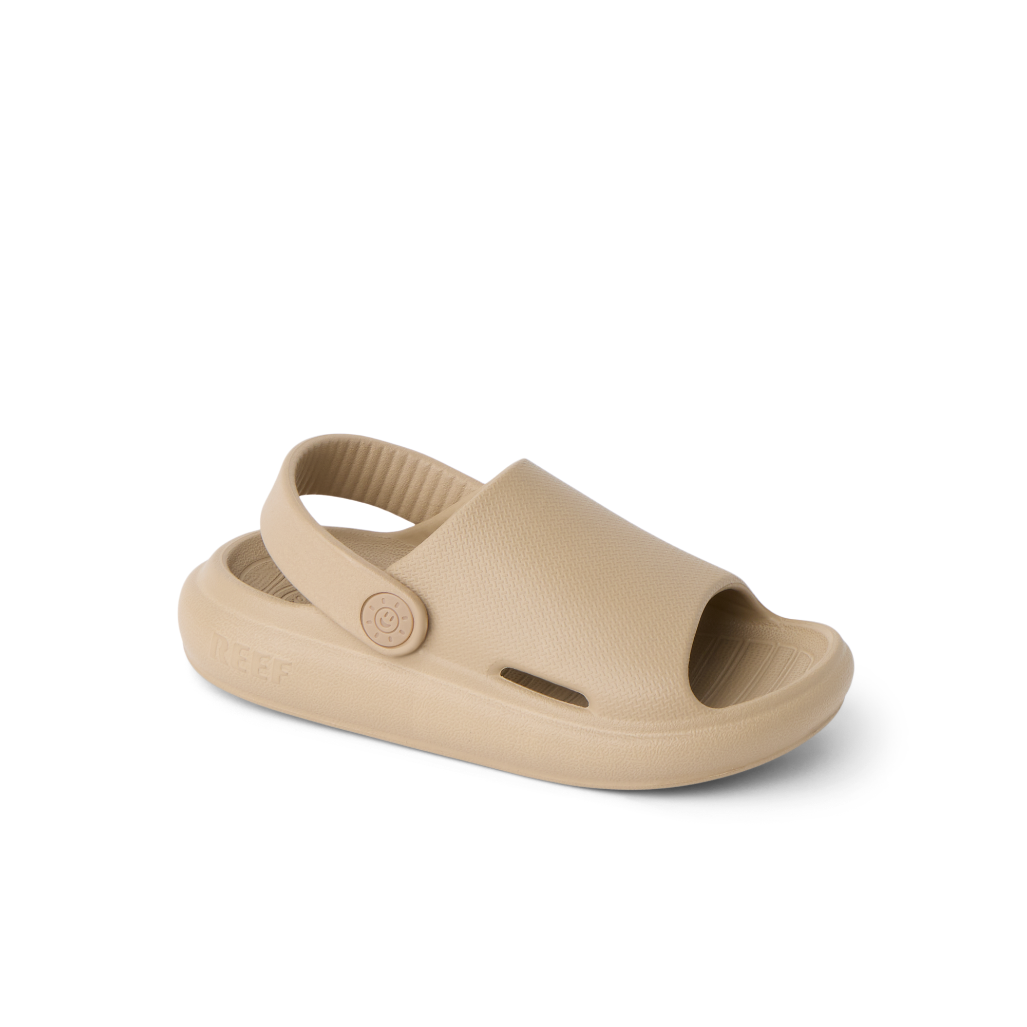 Super lightweight and ready for fun. The Little Rio Slide is designed with injected EVA that can be worn in and out of the water. Finished with a convertible strap and sunny embossed detail.