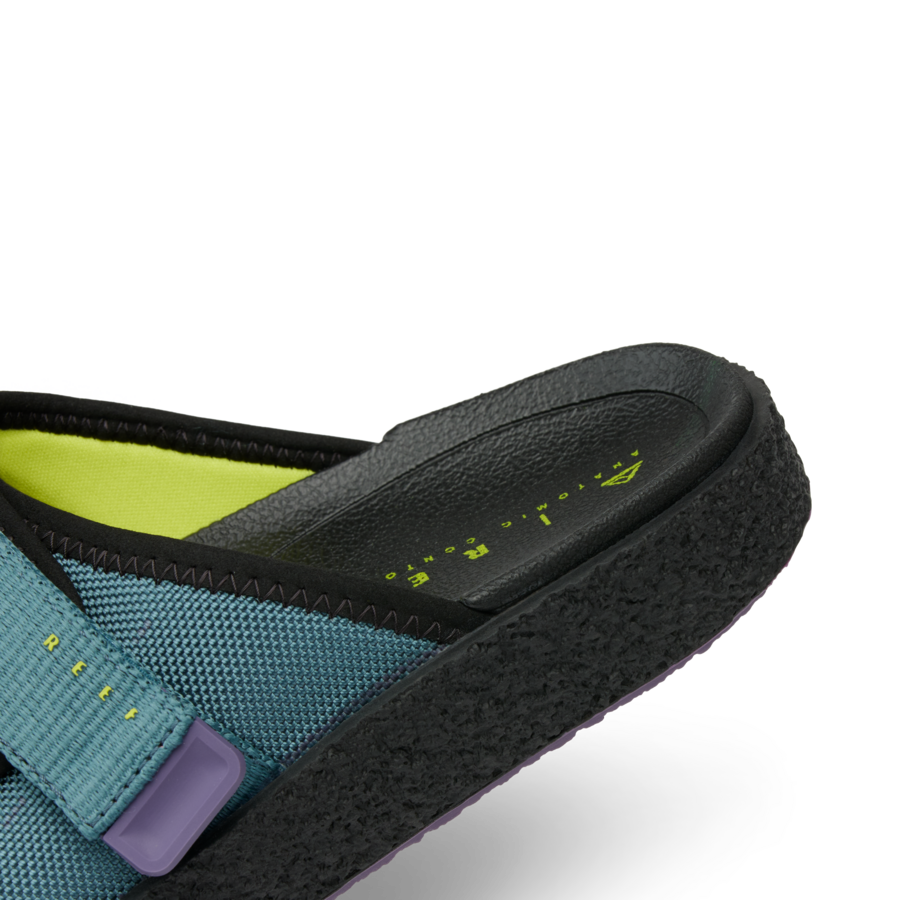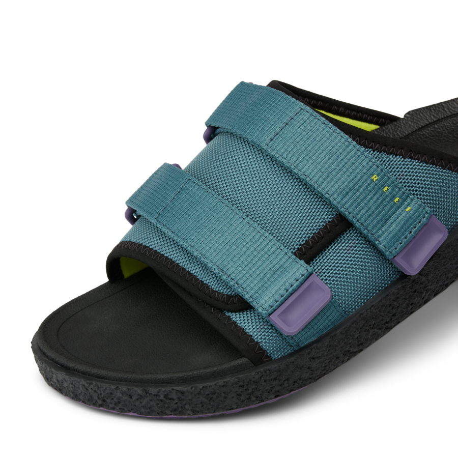 With a modern slide silhouette and crepe textured rubber outsole. the Montauk brings bold style to the beach. Built with a cushy upper from mostly recycled materials and a soft. supportive sugarcane EVA footbed. this slip-on sandal offers superior comfort and function. Two adjustable top straps let you customize your fit throughout the day. and make room for socks when the surf sessions end.