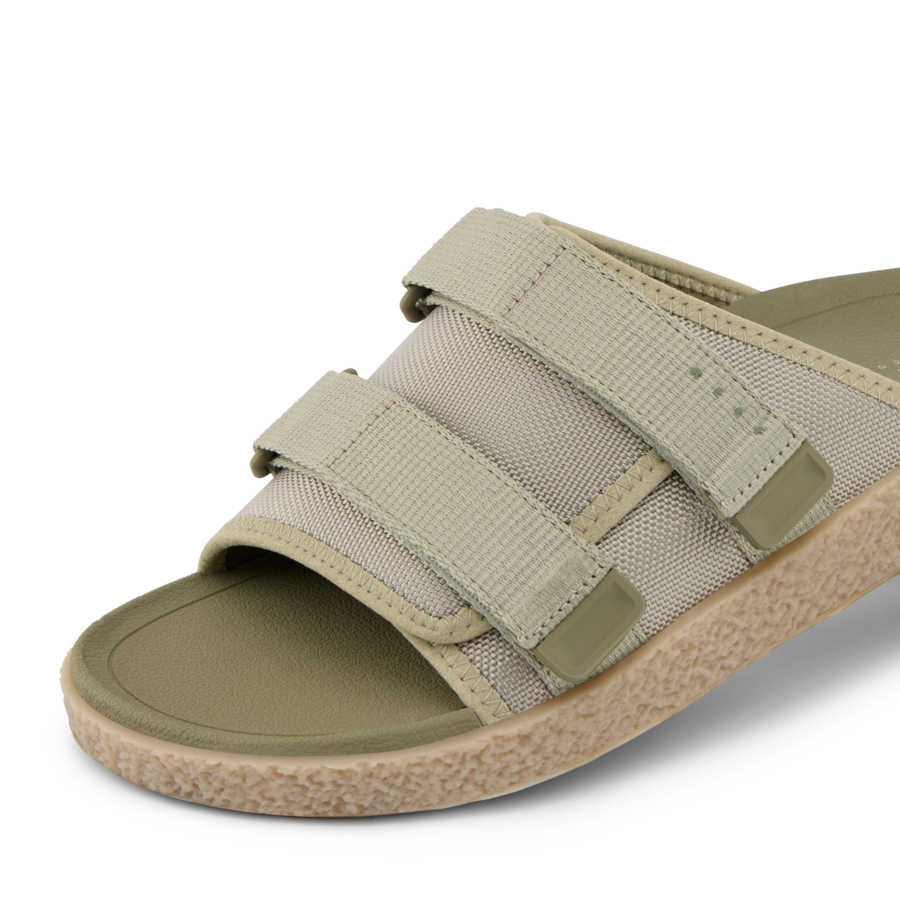With a modern slide silhouette and crepe textured rubber outsole. the Montauk brings bold style to the beach. Built with a cushy upper from mostly recycled materials and a soft. supportive sugarcane EVA footbed. this slip-on sandal offers superior comfort and function. Two adjustable top straps let you customize your fit throughout the day. and make room for socks when the surf sessions end.
