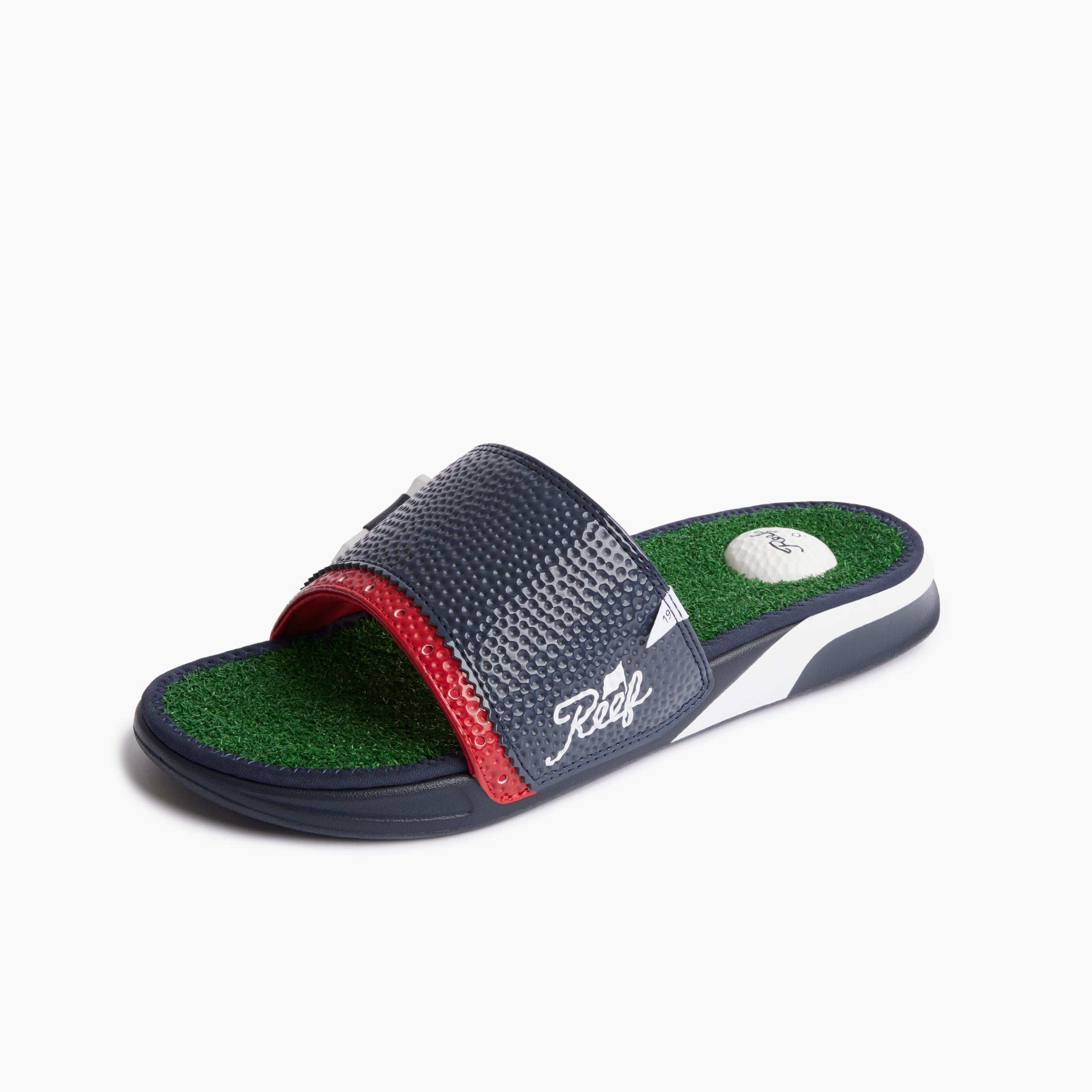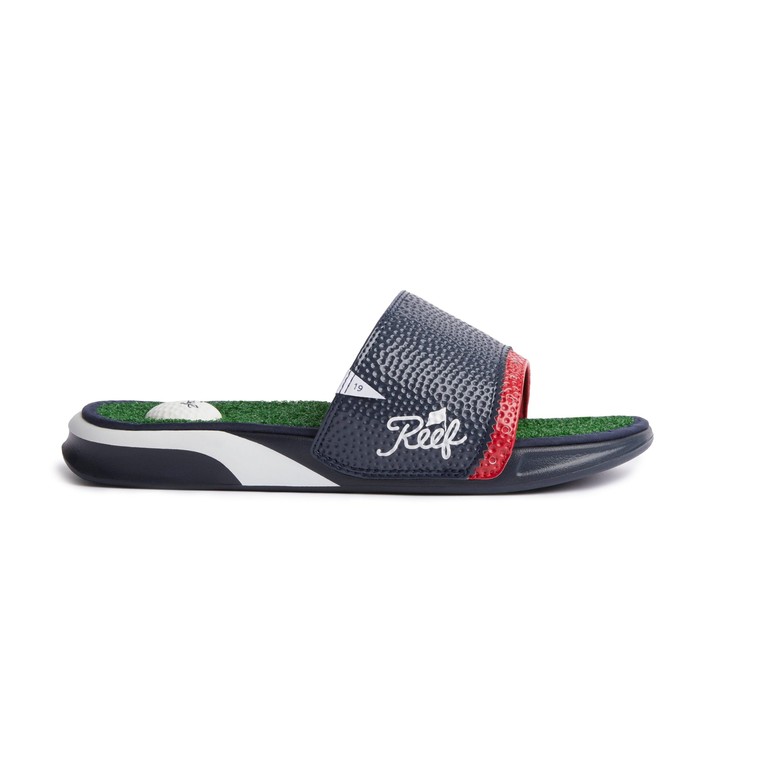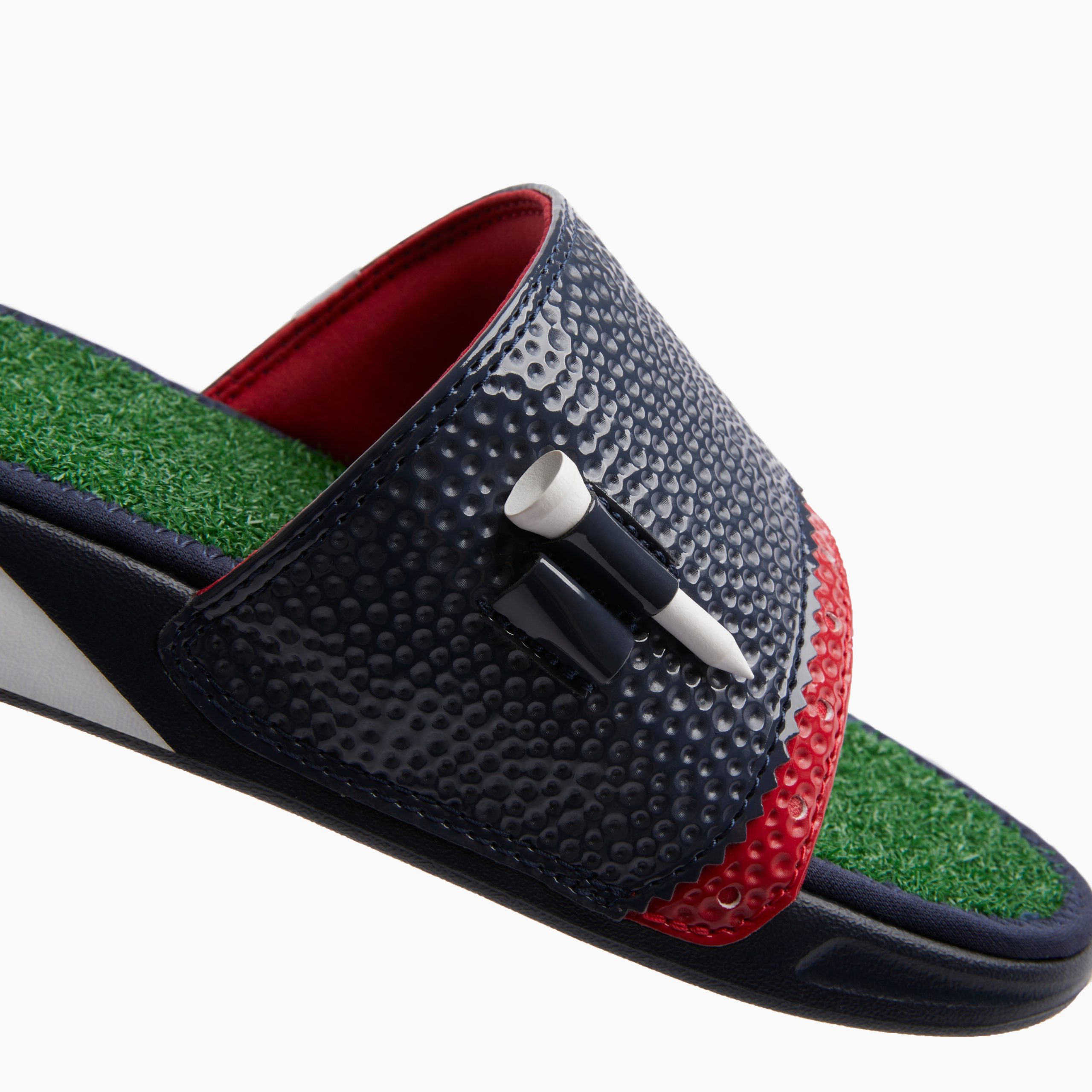 This is one decision you will not want to do over! The faux grass footbed. the golf ball heel pad. the built-in tee and the non-injection molded durable foam outsole — it’s a hole in one. Perfect for the locker room or grabbing that round of drinks after your round.