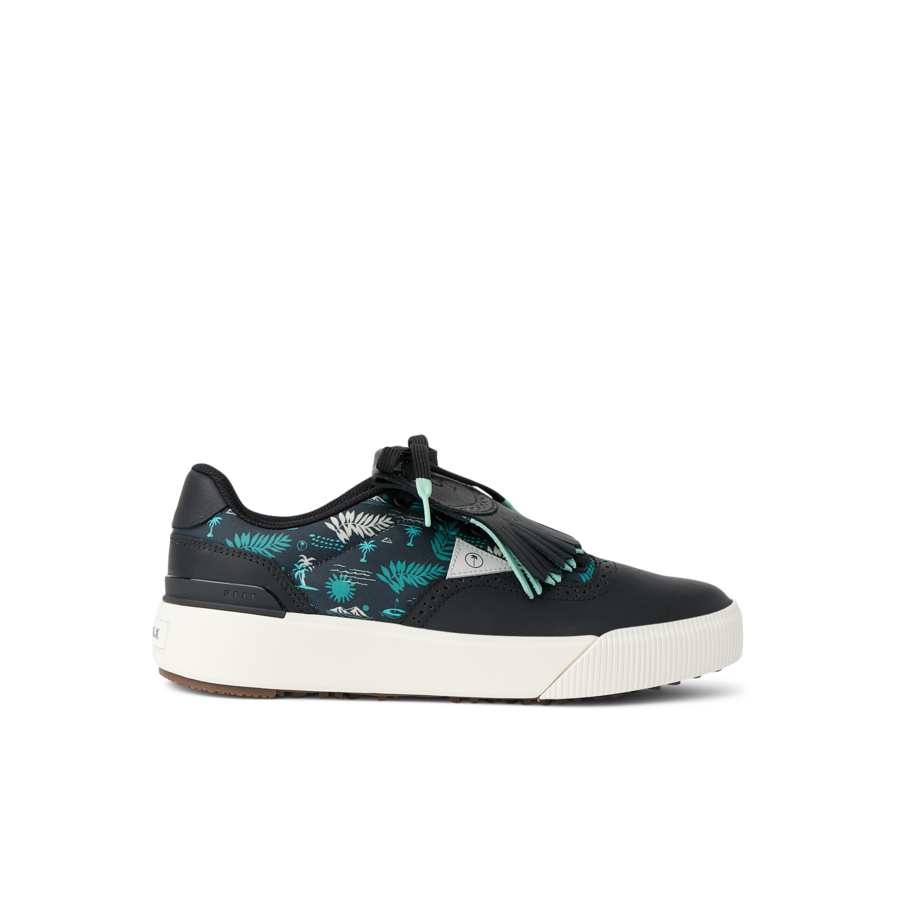 Because the clubhouse could use a little color and so could our golf kit. the Onshore Pebble joins the crew. An expressive golf shoe that doesn’t skimp on function. Yes. the Kiltie is removable. but once you see how it enhances your swing and keeps you out of the bunker. you’ll rock it for the entire round. The upper features rich textiles and sustainably-sourced leather—both treated with a water-resistant coating for potential damp conditions. Fine tuned and finished with a multi-directional soft spike tread. that’s safe to wear off the course. and our signature hidden bottle opener for your mid-game refreshments.