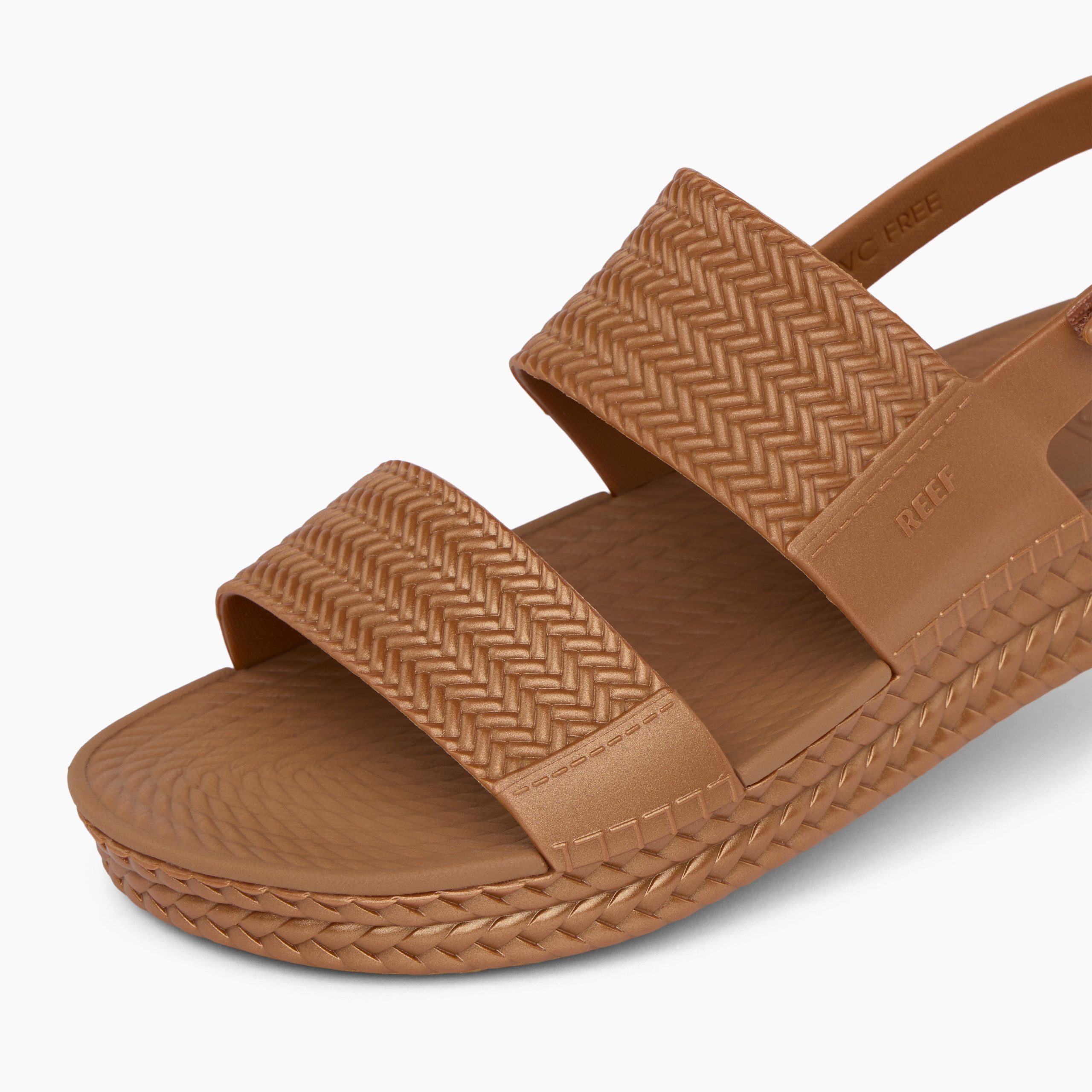Check out the espadrille-like braids along the side wall of the Water Vista. taking you back to your best beach vacation. And the wide straps with jute-like. ropey carvings. This sandal’s got style. But the best part is that it’s all made of water-friendly materials which means wash it off and go to the next thing. all day. all season. Low maintenance. Like you.