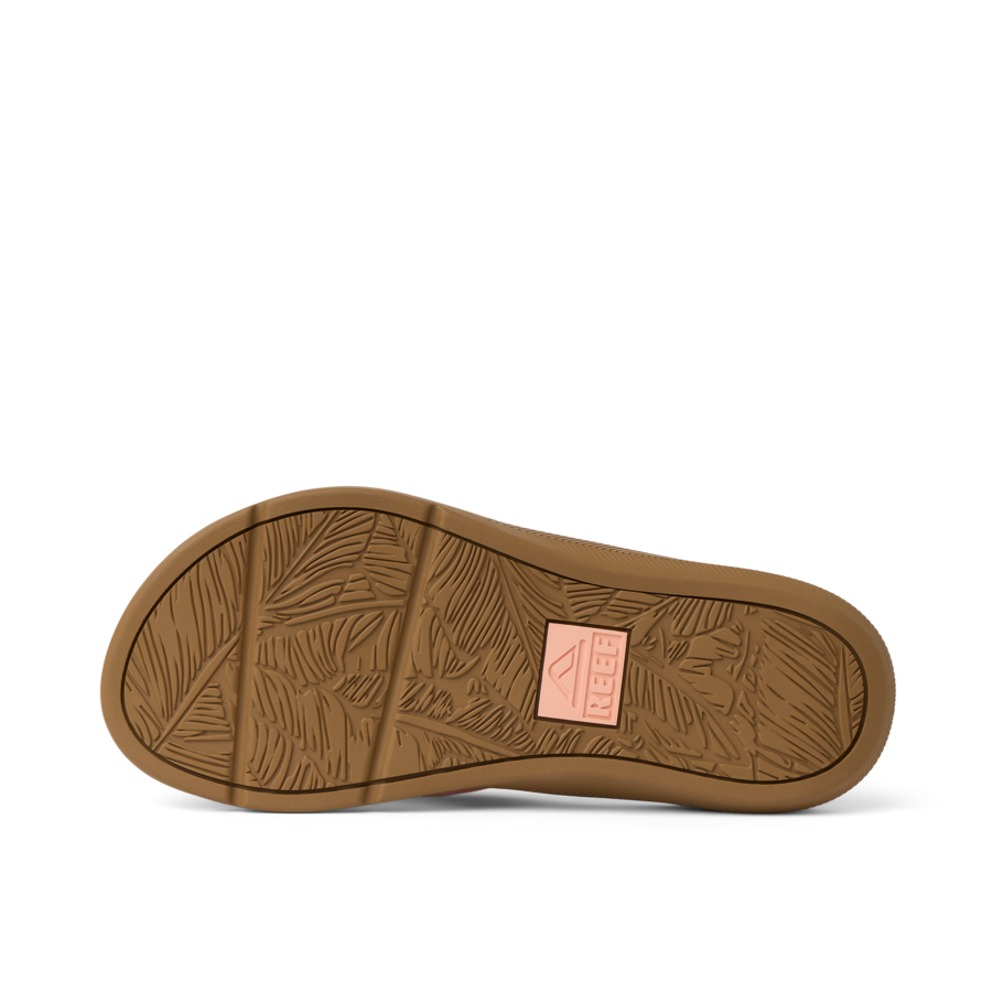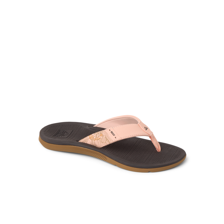 A favorite REEF sandal. the Santa Ana makes you feel good just saying its name. And it looks even better – note the palm frond-inspired side wall. Right? But most of all. slip into it and feel the cushiony softness with high arch support. a padded vegan leather strap. and bamboo-inspired texture under foot for a no-slip grip. You get all the feels with the water-friendly Santa Ana.