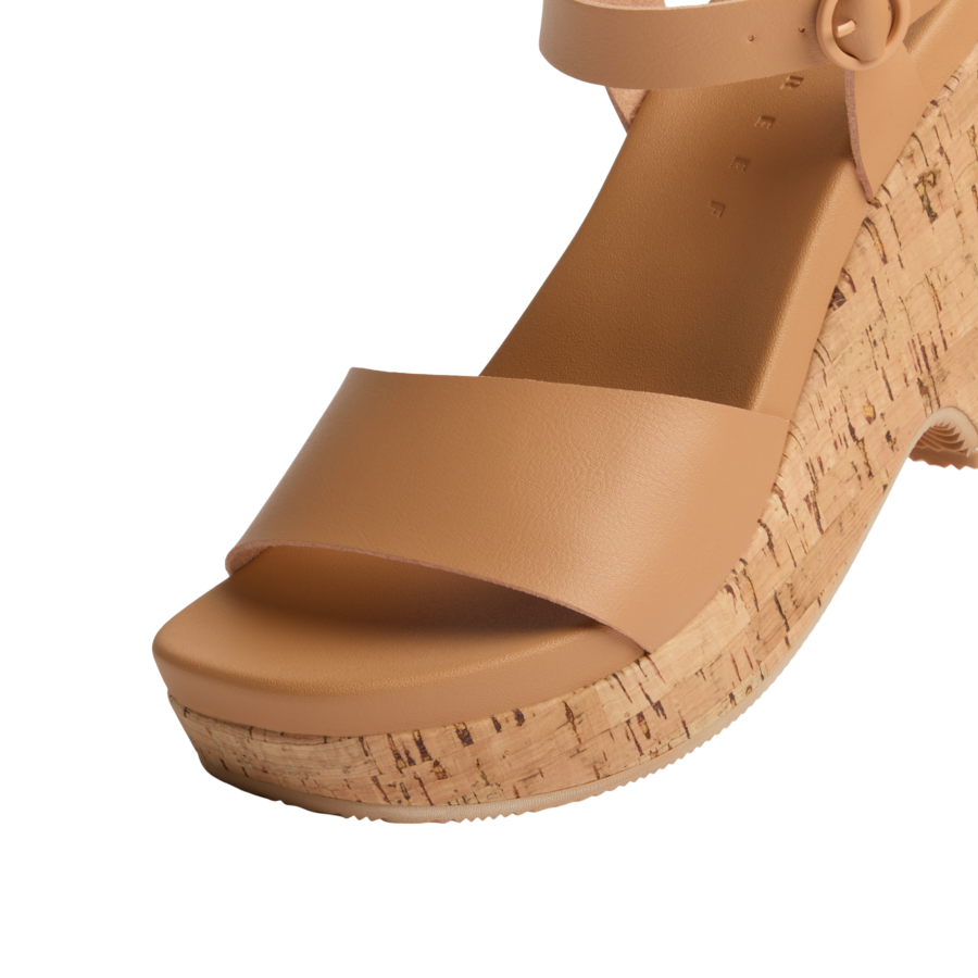 Where the margaritas flow and the music never ends. that’s the Sunset Sayulita. This fun and flirty sandal is calling for the dance floor with its adjustable ankle strap and grippy sole. From day to night. the natural cork combined with a chunky wedge make these an instant boost for your legs. and your confidence.
