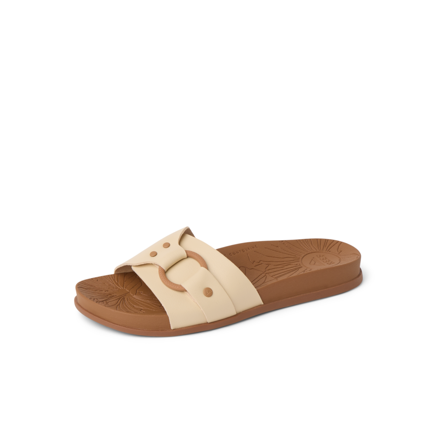 Chic. comfy. and ready to travel. An elevated take on a classic slide. the Vista Soho Cruz is perfect for dressing up or styling down on your next sunny outing. It’s crafted with soft vegan leather. a rubber outsole and generous arch support to keep you comfortable from tropical vacation to city exploration.